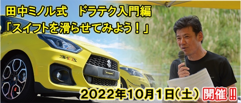インストラクターは全日本GT選手権などで活躍され、現在はSUZUKI スイフトのチューニングパーツの開発などを手がける田中ミノル氏を迎えます。