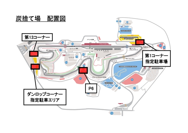| (1)火災や事故防止のため、コース、パドック、ピット、スタンドなど「火気厳禁エリア」での使用はご遠慮ください。 (2)火災防止と施設保全のため、「直火」は絶対にお止めください。 (3)他のお客様にご迷惑が掛かる火気使用はご遠慮ください。 (4)カセットガスコンロなどの「火気」は、「使用上の注意事項」を厳守してご利用ください。 (5)使用後の炭は、決められたドラム缶の中に入れるようにお願いします。 ※ごみ箱には絶対に捨てないでください。火災の原因になります。 |