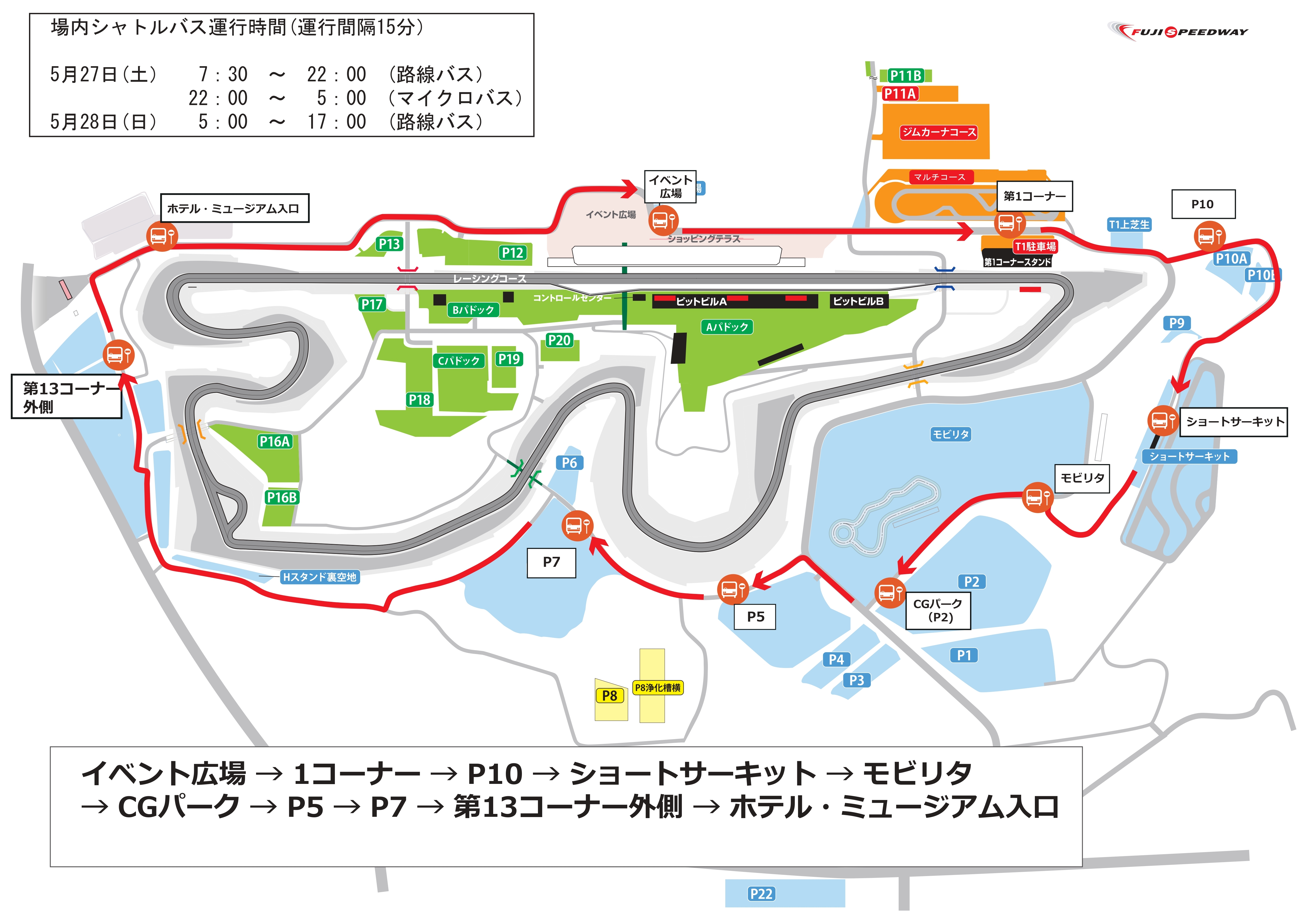 1.JR御殿場駅~富士スピードウェイ場内イベント広場(JR御殿場駅富士山口ターミナルより発着)