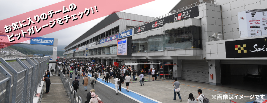 過去にレースに参加した実物マシンの展示や、実際にマシンのメンテナンスが行われているエリアを間近に見ていただくことができます。