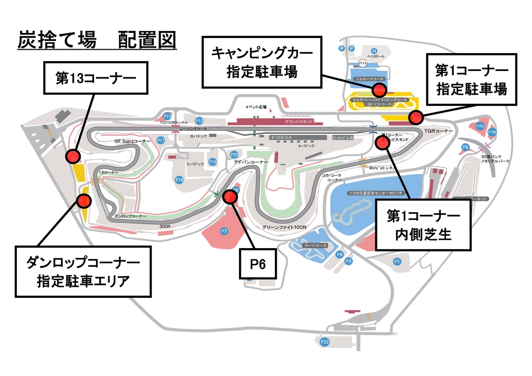 ・場内での遺失物や放置物、上記処分物につきましては、富士スピードウェイ(株)では一切の責任を負いかねますのでご了承下さい。