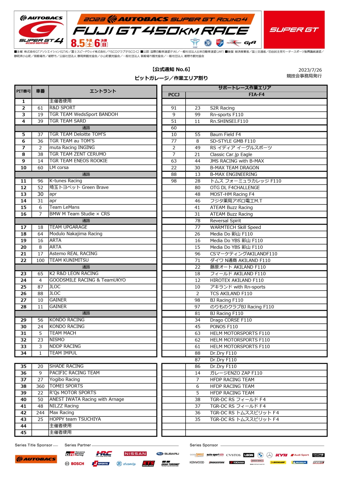 | 大会名称 | 2023 AUTOBACS SUPER GT Round4 FUJI GT 450km RACE |