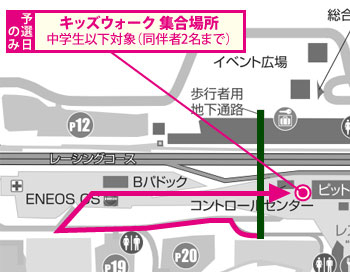 | 集合場所 | ポルシェゲート![]() その後ストレート上3つのゲートからの同時入場となりますので予めご了承ください。 |