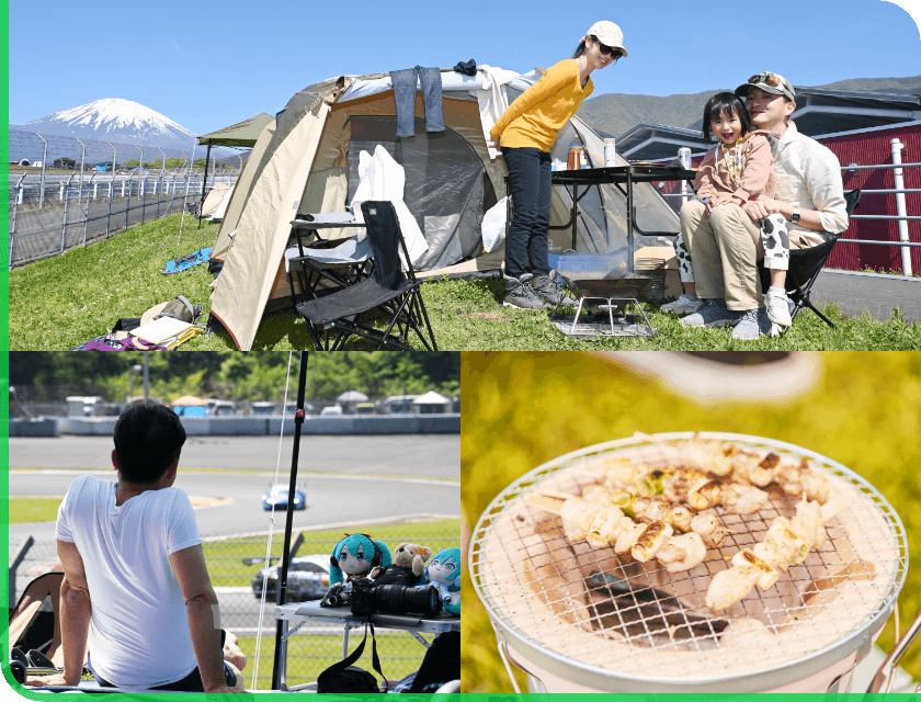 富士スピードウェイでは場内各所の芝生エリアで自由にキャンプをしていただけます!