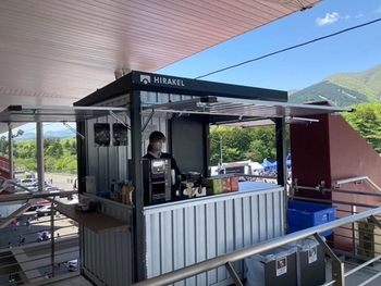 テーブルやベンチを設置したグランドスタンド内の専用スペースです。