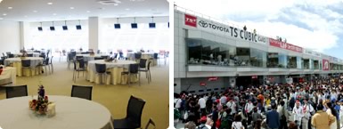 ピットビル2階の専用ラウンジでゆったりとお食事をしながら、レース観戦を楽しめます。